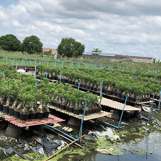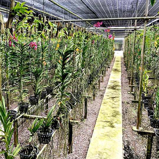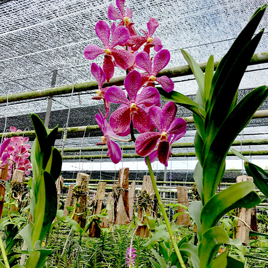 サンサンオーキッドでは、洋ラン育種家 花島 信氏の タイ王国パトゥムターニーにある現地法人タイ ハナジマ オーキッド(Thai Hanajima’s Orchids Co,.Ltd) から 直輸入した洋ラン(バンダ、カトレヤ、パフィオペディルム他)を中心に、 さまざまな植物の培養、育生を行っています。 タイの気候は洋ランの生育に最適といわれています。 温室いらずで、屋外にて、1000種以上の品種を栽培しています。